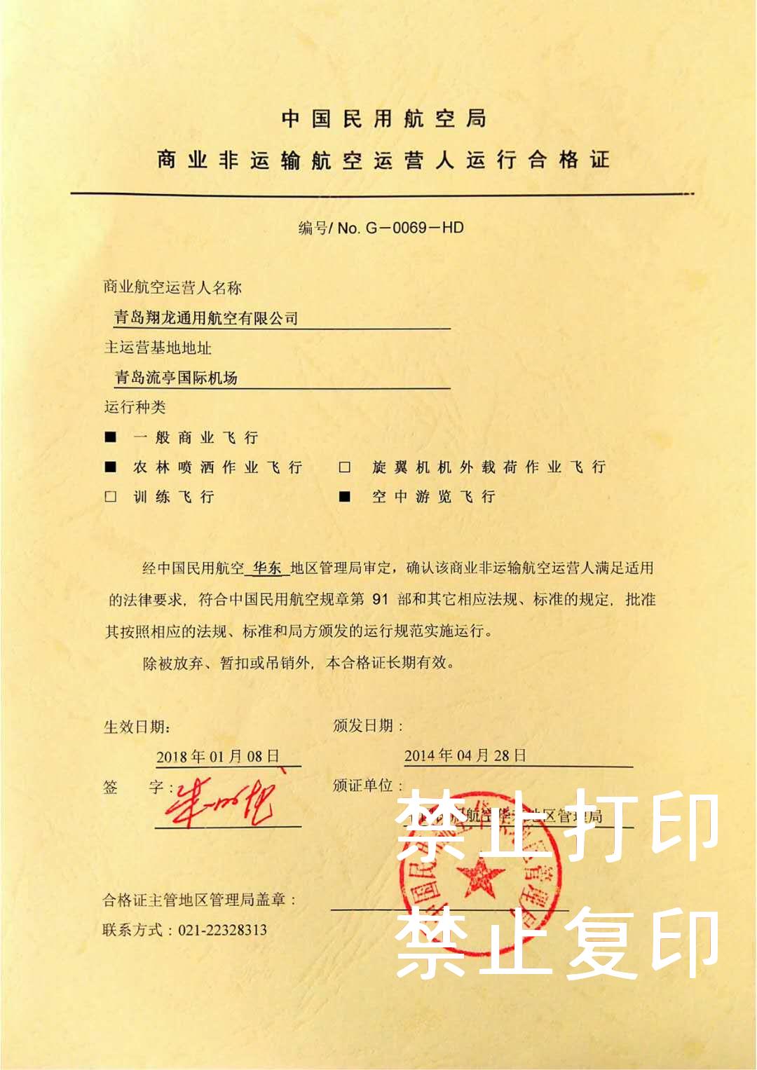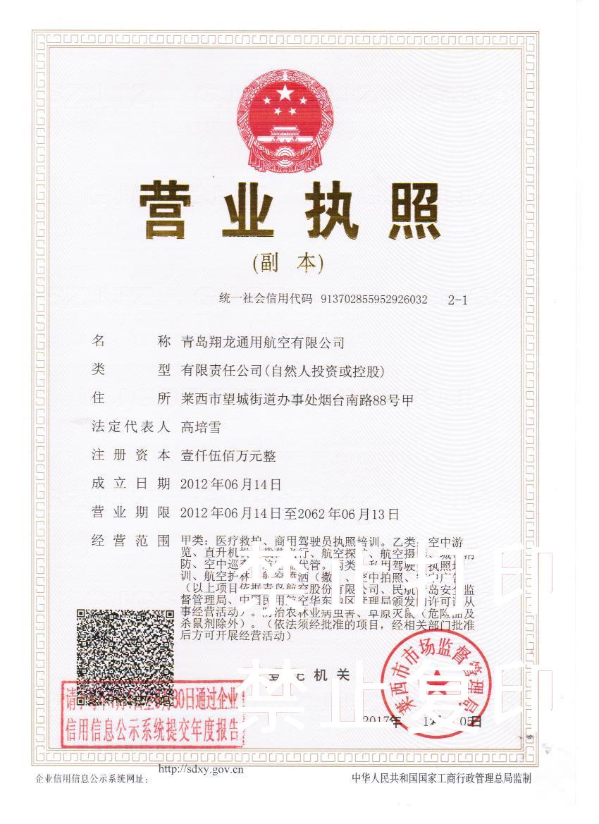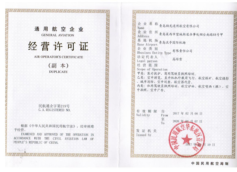 青島翔龍通用航空有限公司是中國民航總局批準成立的具有甲類運營資質(zhì)的通用航空企業(yè),是青島第一家通用航空企業(yè)。